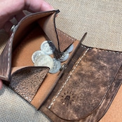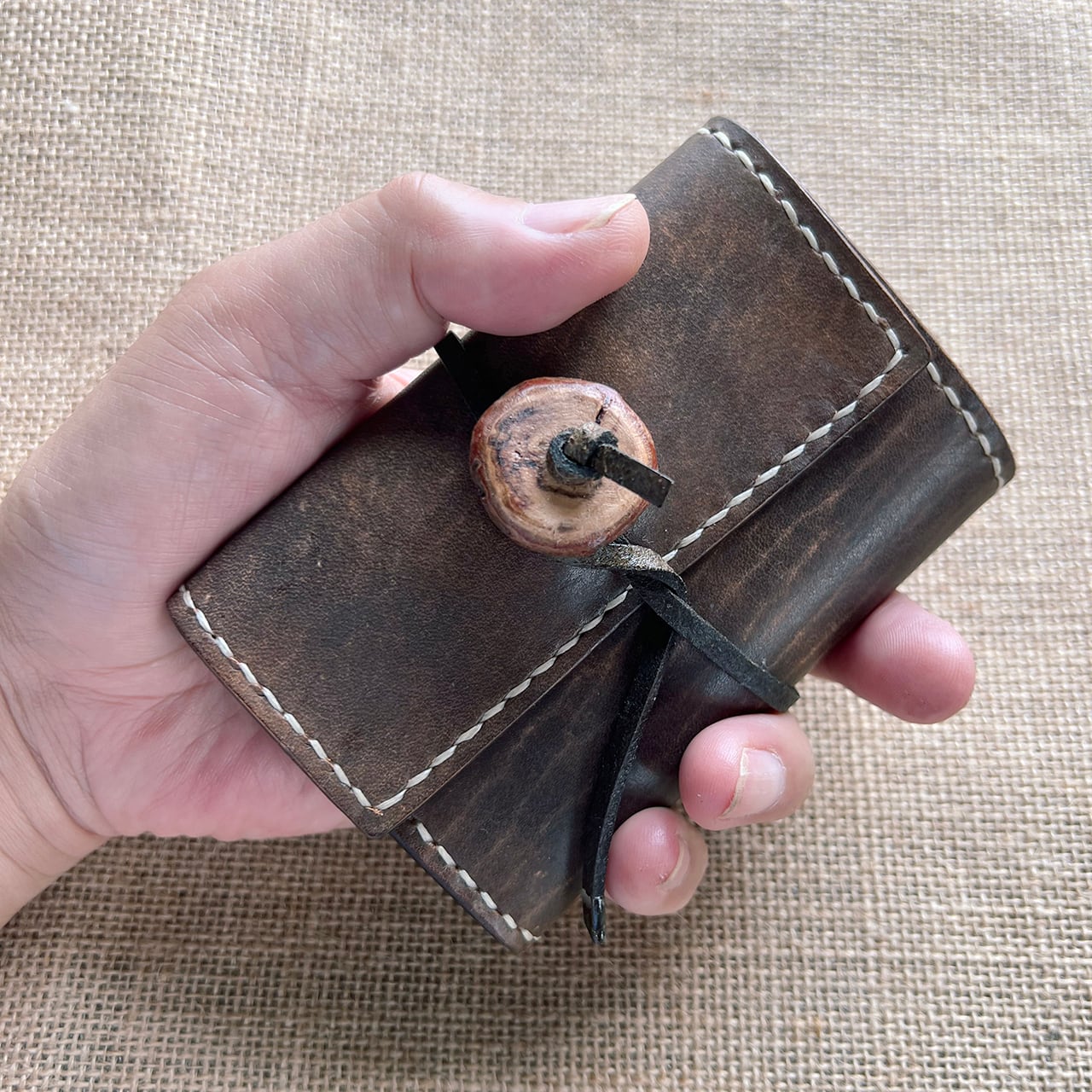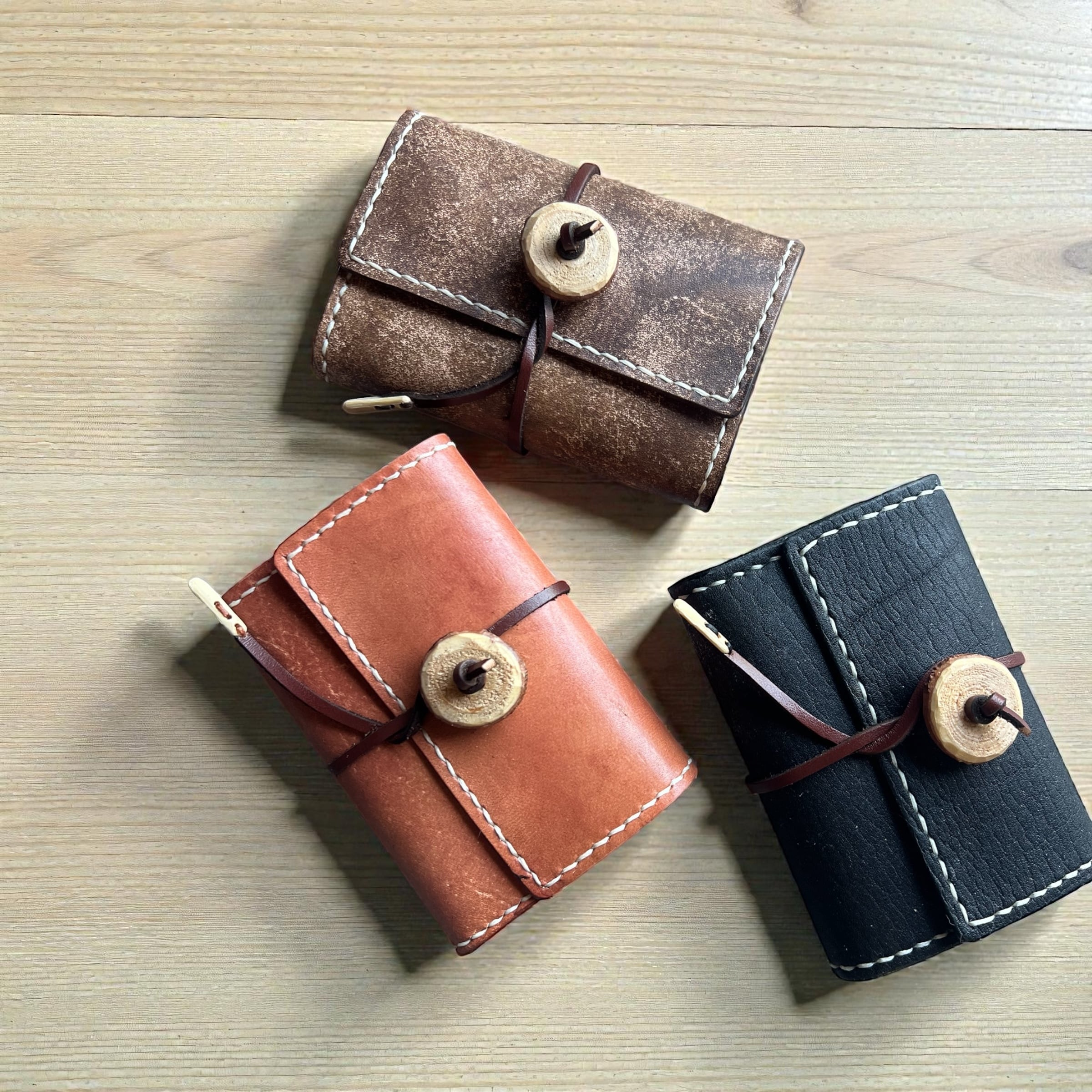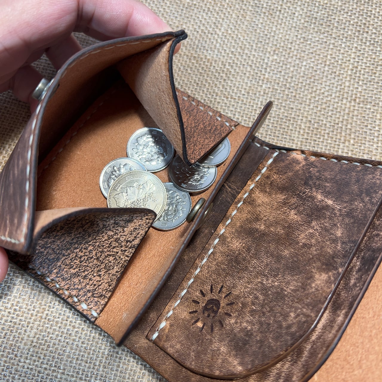 できるだけコンパクト、かつブッシュクラフトキャンピングにも合う財布を目指して手縫いで一つ一つ丁寧に制作いたしました。