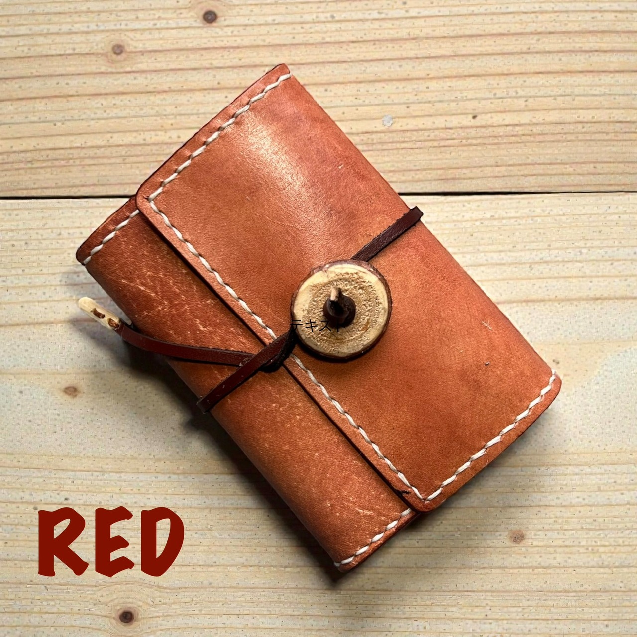 本体:ブラウン、レッド 牛ヌメ革 ブラック牛きなりソフトヌメ革 (着色の上、仕上げ剤加工) 紐:牛革 ボタン:木