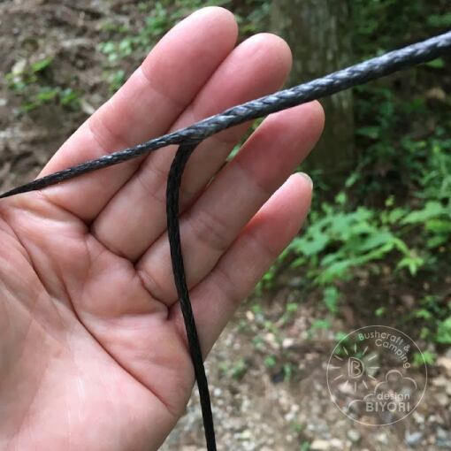 非常に軽く、自分が使っているDDハンモックについていたロープが2本で215g(写真6枚目)だったのですが、こちらは2本で35g(写真7枚目)でした!
