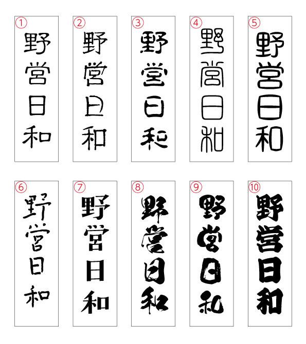 文字入れは7文字まで、1面・2面からお選び頂けます。字体は画像にある①〜⑧でご指定下さい。